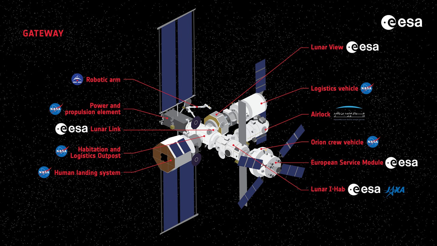 Yet Artemis quite heavily relies on Europe as well. The European Service Module, built by ESA and its member states, keeps the Orion spacecraft alive with propulsion, electricity, air, water, and more. As ESA’s Director General put it, “Quite simply, Orion could not fly without Europe.” ESA will also provide key elements for the Lunar Gateway, a modular space station in lunar orbit, including a refuelling/communications module and an international habitation module.